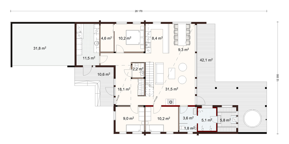 The inspiration for our new model, Honka Ailo, has been taken from the unique landscape of Finnish Lapland. It's magnificent glass wall makes the interior feel at one with nature and the high living room is bathed in natural light.