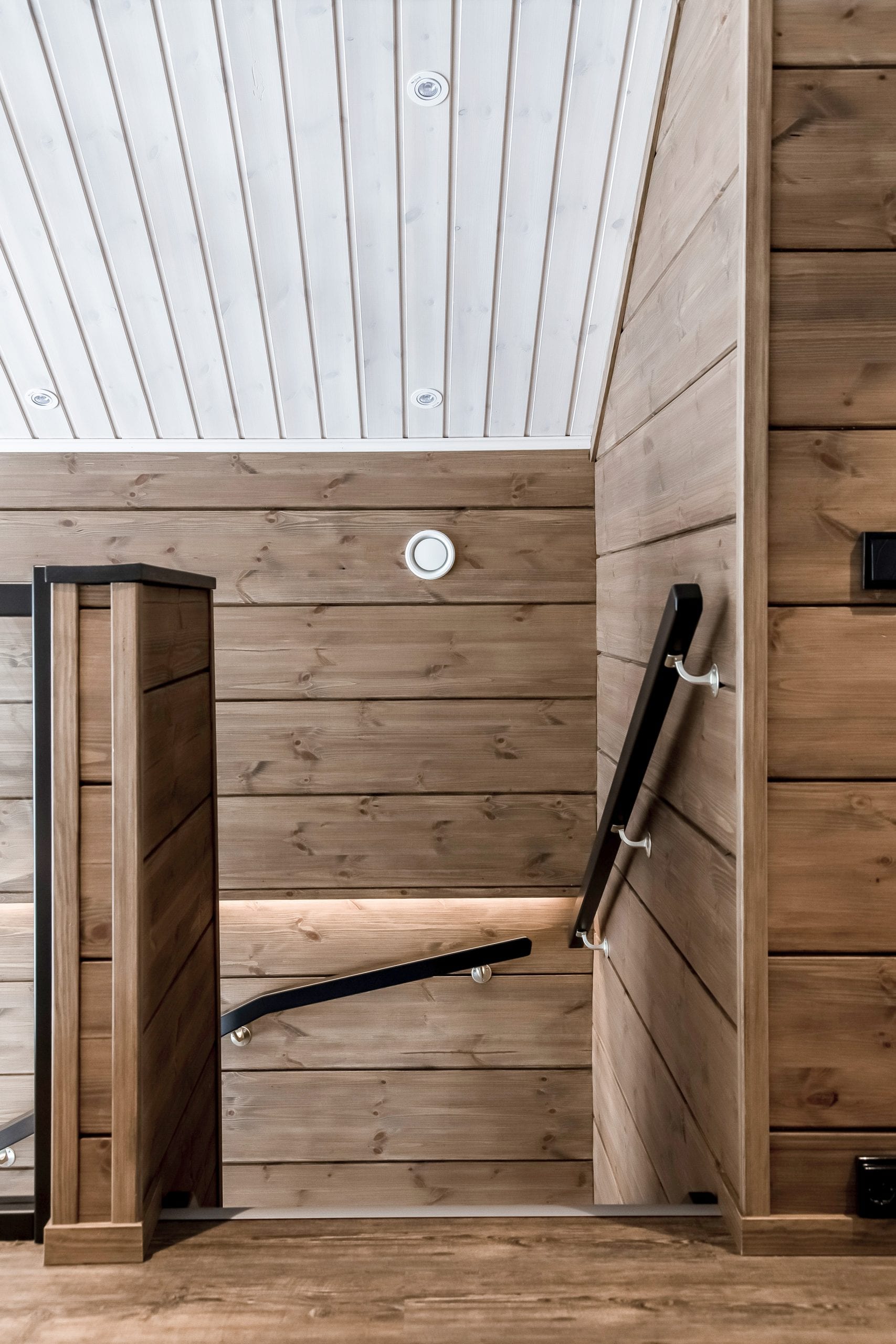 The nest-like atmosphere of the interior is created by a beautiful world of broken colours and interesting surface material choices. The cabin is conducive to peace of mind.