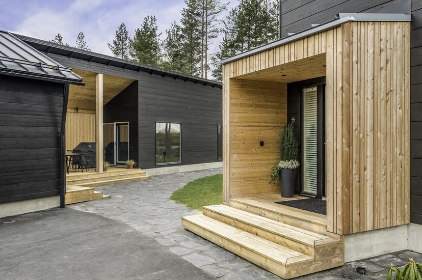 The two-storey house has a high and narrow shape, which is typical of houses in the Ostrobothnian area of Finland. This gives the house a simple, streamlined and angular look.