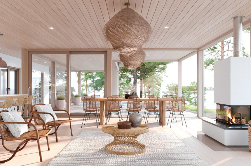 Our latest log villa collection, Lux, is named after light — its modern Scandinavian architecture is based around light. Floor-to-ceiling windows let in natural light from morning to night. You can see outside as soon as you awake in the master bedroom. The large covered veranda provides shelter from rain and sunshine. Enjoying seasonal changes and the surrounding landscape is child’s play in this house.