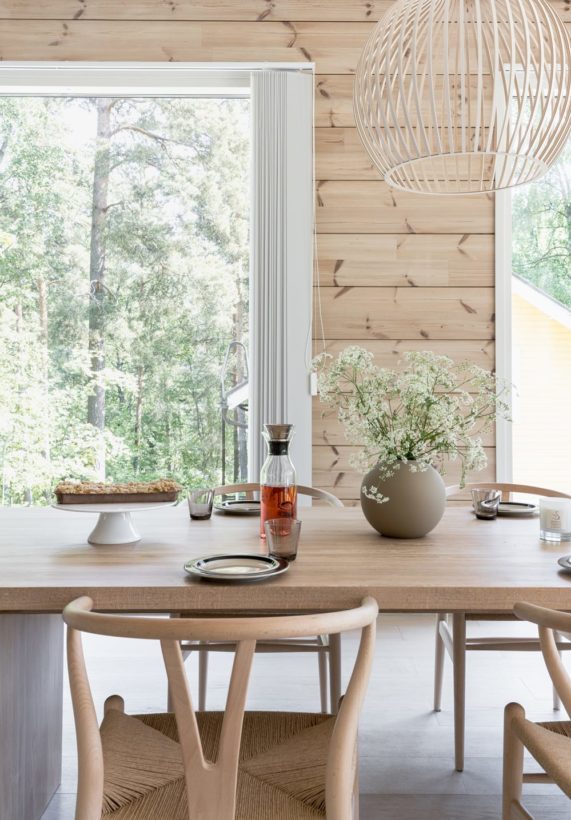 In Scandinavian countries, nature is close to people even in urban surroundings. Building with wood is popular. A house made of pine logs provides a natural, finished wood surface on both the exterior and the interior of the building. Large windows allow an open view outside, creating a connection with nature.