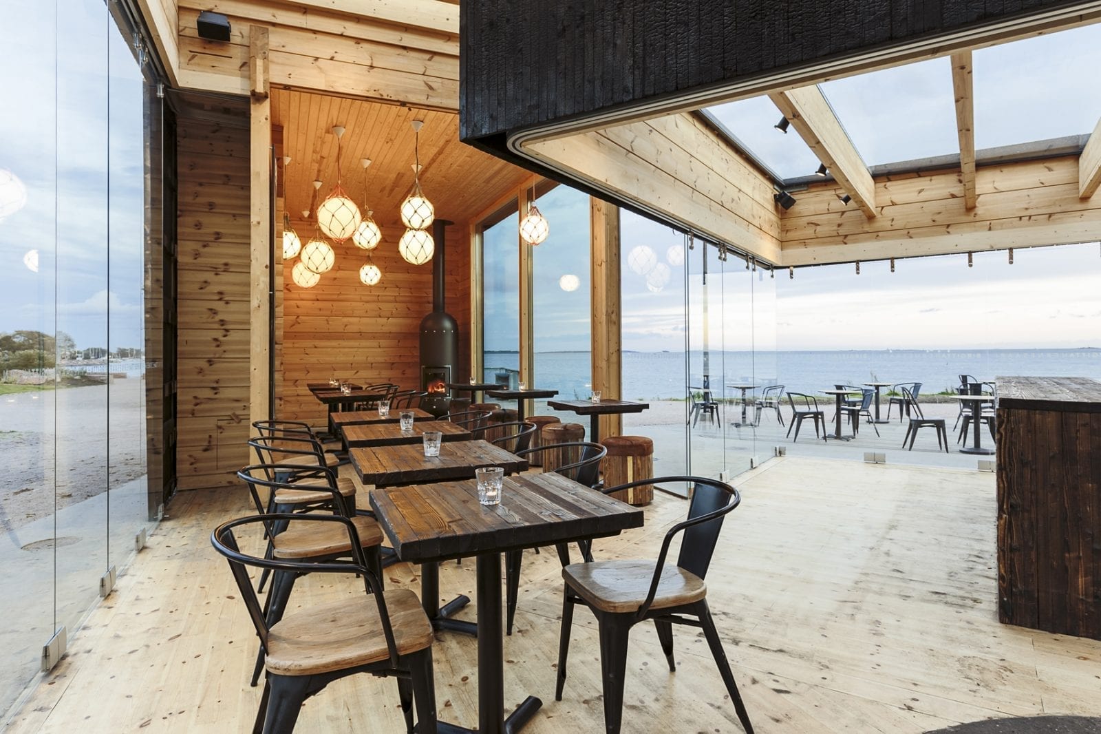 Café Nokkalan Majakka represents ambitious wood architecture in maritime surroundings in Espoo, Finland. The frame of the building was realised using Honka’s non-settling logs, which enabled the use of large panoramic windows with modern, light joints. The log heart of the building is hidden under slanted facade elements clad in pine panels. The modern café offers panoramic views over the Baltic Sea.